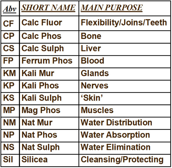 homeopathically-prepared ‘Cell Tissue Salts’ remedies